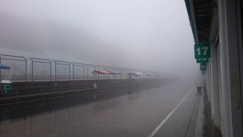 木金と好天だったSUGOの天気は下り坂で土曜日は朝から雨模様。朝一のGP-3クラスの予選こそ行われたものの、その後SUGO特有の深い霧が立ち込め、予定されていたスケジュールは視界不良の為全てキャンセルとなった。その為日曜日に予選決勝を行うという変則スケジュールに変更された。