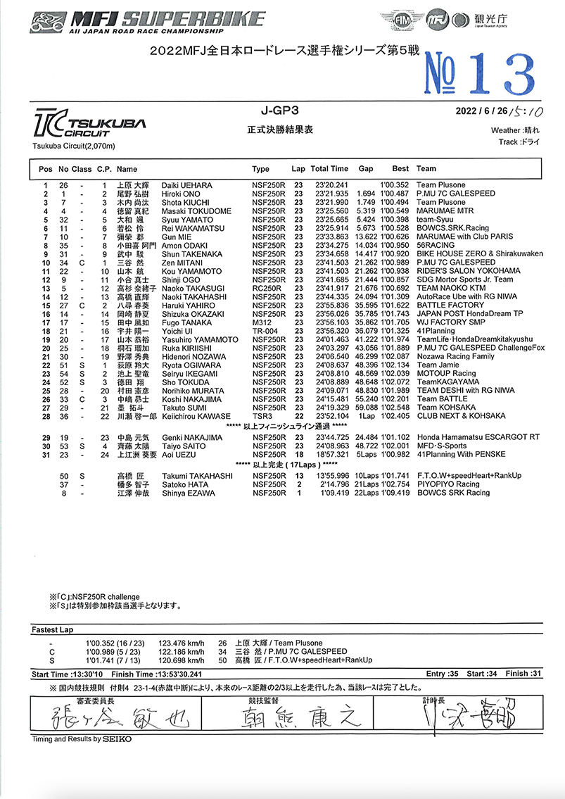 一周が短い筑波サーキットはタイム差も拮抗しトップとの差はコンマ5秒。メカニックの頑張りでマシンセットアップも順調で、徳留のマシンへのフィーリングは悪くなさそうだ。チームスタッフは酷暑の中、午後の決勝に向け慌ただしく準備を進める。決勝スターティンググリッドは3列目アウトサイドからとなる。